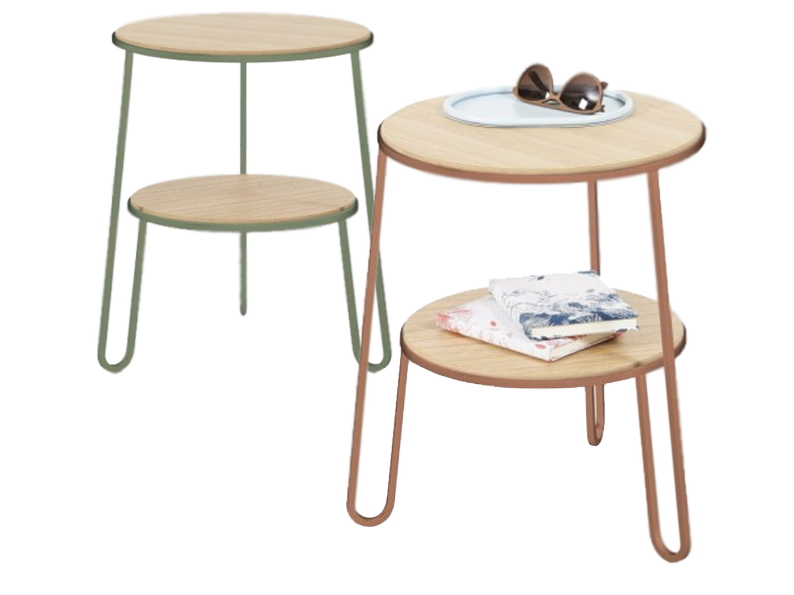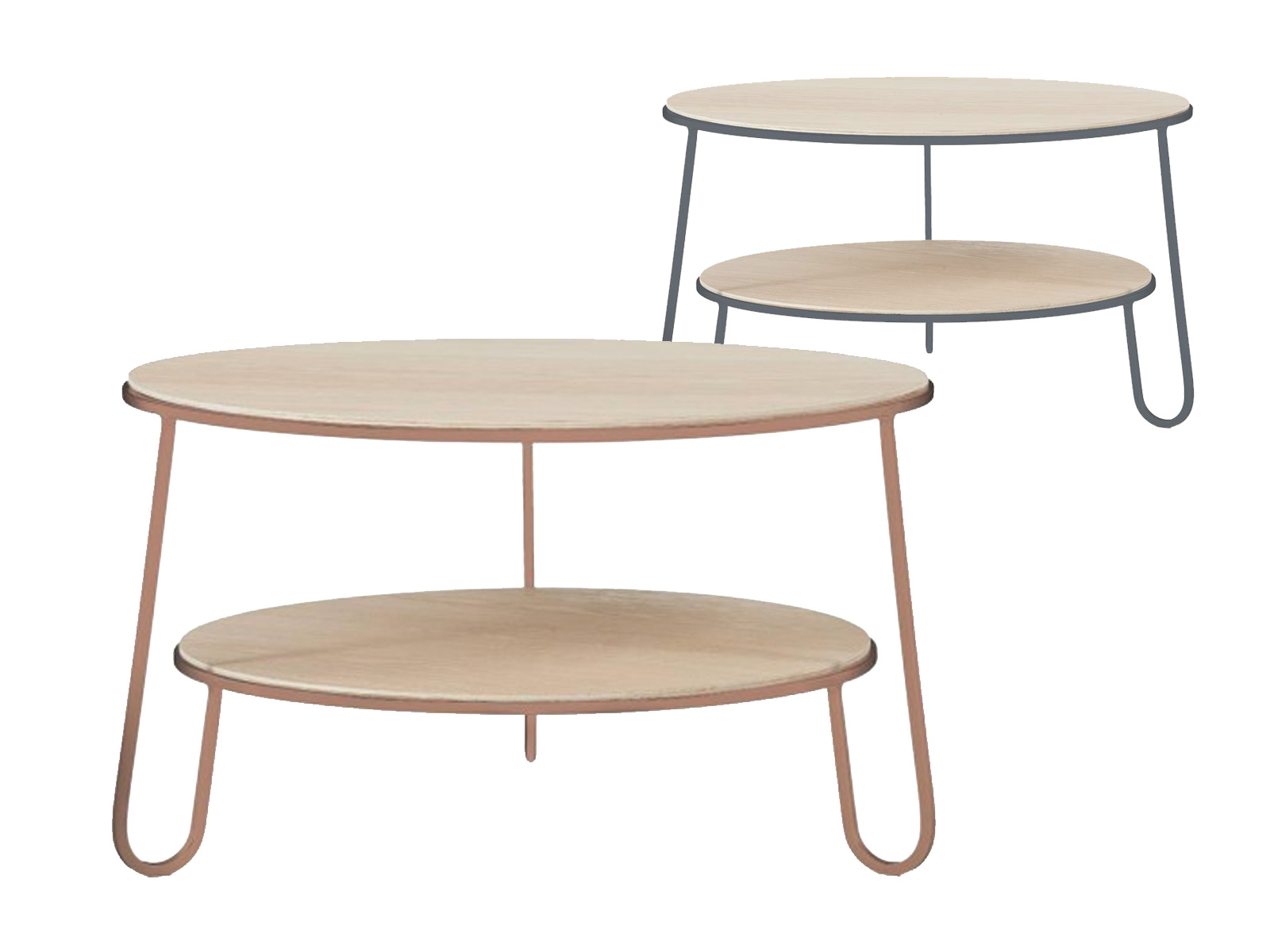 Anatole, de hoge smalle bijzettafel, is uitgerust met een bovenste plateau van 40 cm diameter (op 50 cm hoogte) een daaronder (op 23 cm hoogte) een blad van 37 cm diameter.