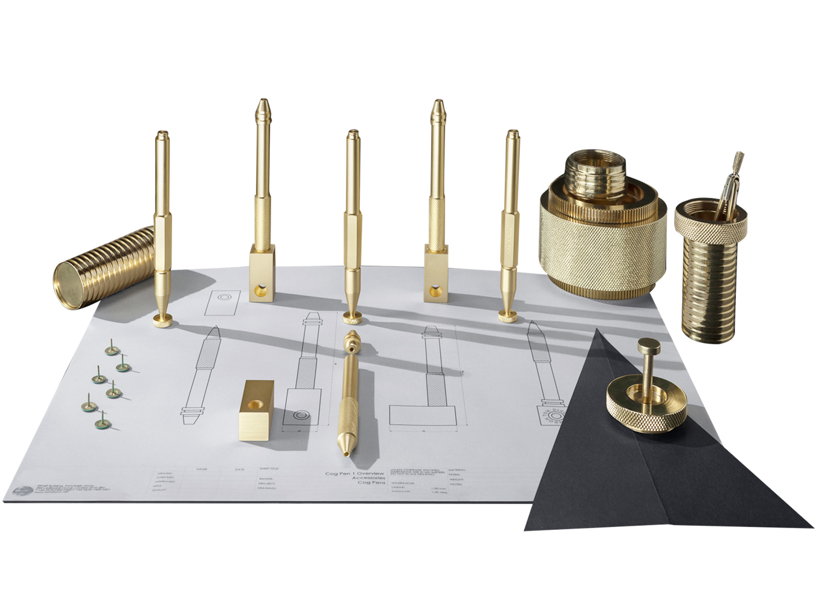 COG, een andere bekende reeks van designer Tom Dixon, mag er dan wel al een tijdje zijn, je raakt er niet op uit gestaard. Begin dit jaar werd de COG-familie nog uitgebreid met enkele nieuwe items, waaronder een zwarte balpen en een pennenhouder, geconstrueerd uit massieve messing. De lijn combineert techniek met een verbluffende goudkleurige uitstraling. Anders dan bij Ferm Living werd echter geopteerd voor een glanzende in plaats van matte look, wat de producten ineens een totaal ander voorkomen geeft…