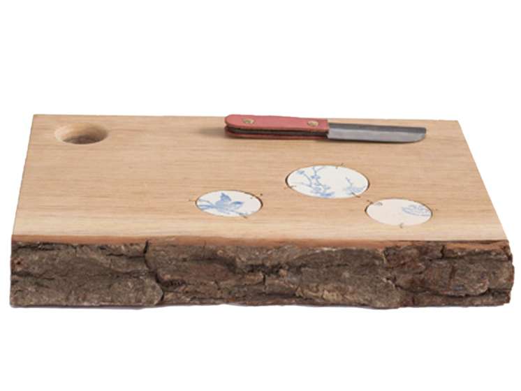 “Ook Studio Simple (het bureau achter het Gentse ontwerperskoppel Ann Vereecken en Jeroen Worst) is volledig mijn ding. Want zoals hun naam het stelt, zijn ook zij steeds op zoek naar eenvoud: hoe objecten creëren die zo licht mogelijk in de wereld staan? Steeds met het nodige respect voor de natuurlijke materialen, zoals bijvoorbeeld de snijplank met de boomschors er nog aan. Prachtig toch?”