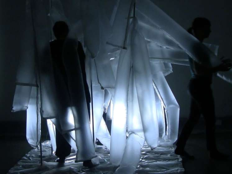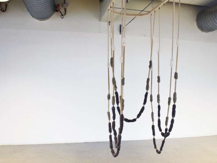 “Ook het ‘hacken’ van bestaande technieken is verhelderend. Vorig jaar bestudeerde ik de wijdverbreide techniek van het tuften of vilten van wol. Als resultaat van deze studie, besloot ik dit gevilte wol te gebruiken als een ijzersterk maar ook zacht verbindingsmiddel bij slingers. Deze kon je gebruiken om een ruimte op delen, maar je kon er evengoed op gaan zitten als op een schommel. Een verrassend effect met andere woorden…”