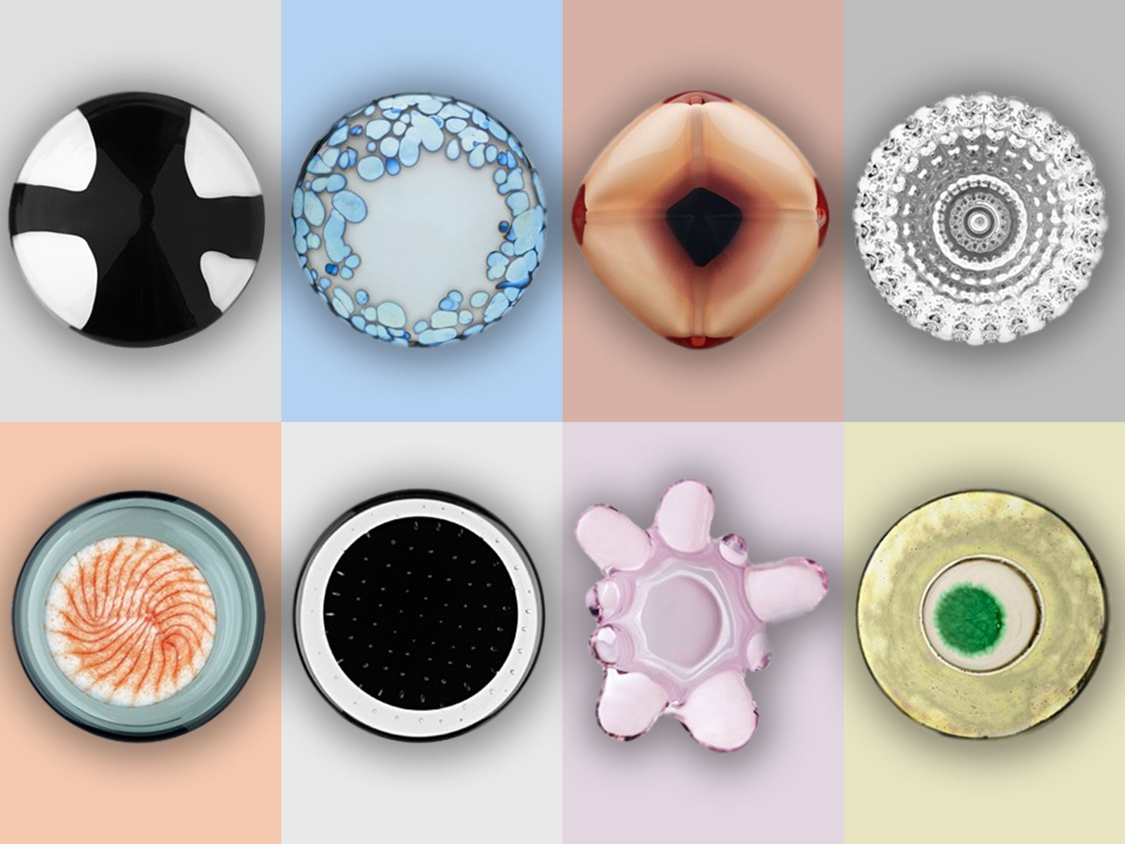 Met klinkende namen als Anemone, Tähtisumu, Simpukka, Seseli, Saturnus, Papaver, Koralli & Kentauri weet professor Oiva Toikka, meester op het gebied van Finse kunst en design, z’n reputatie opnieuw stevig te bevestigen. Een voor een zijn de Aarre’s stukken waar je je ogen moeilijk kan van afhouden, van de kleinste (Koralli – 64 x 89 mm) tot de grootste (Anemone & Papaver, beiden 110 x 93 mm). Ze illustreren Toikka’s én Iittala’s ongelooflijke kennis van zaken wat betreft het ontwerp en de productie van artistiek glaswerk.