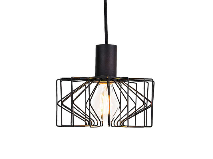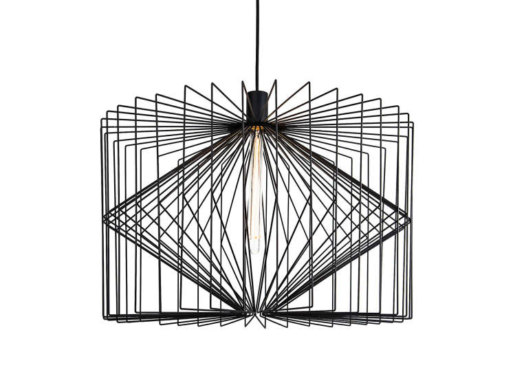 De hanglamp, een design van Bernd Steinhuber, oogt door het gebruik van die draadvorm erg transparant en luchtig.