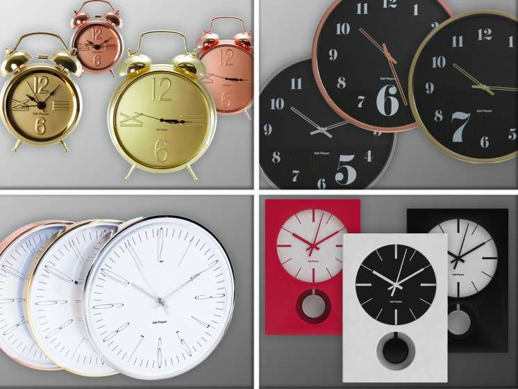 Salt&Pepper is bij de tijd, zo blijkt uit de uitgebreide Zone-collectie. De Zone omvat wandklokjes, klokjes met wekkerfunctie, wandklokken en mantelklokjes in tal van variëteiten en kleuren.