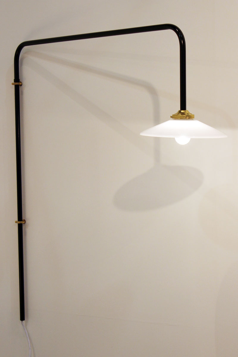 De ontwerpen van het designduo worden gekenmerkt door een geslaagde combinatie van minimalistisch metaal met warme kleuren en natuurlijke materialen zoals leder. Nieuw binnen de collectie Muller Van Severen zijn, naast twee bestaande lampen, drie nieuwe types, zoals je kan zien op de foto’s hierboven en -naast.