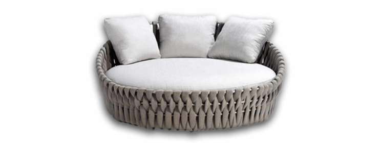 Ook die andere telg, het ligbed, is vervaardigd uit het attractieve vlechtwerk. De zitting bestaat uit het vormvaste en UV-bestendige Batyline, de bijhorende kussens zijn voorzien van een waterafstotende vulling, wat maakt dat dit mooie meubel tegen ieder weertype in ons Belgenlandje bestand is.