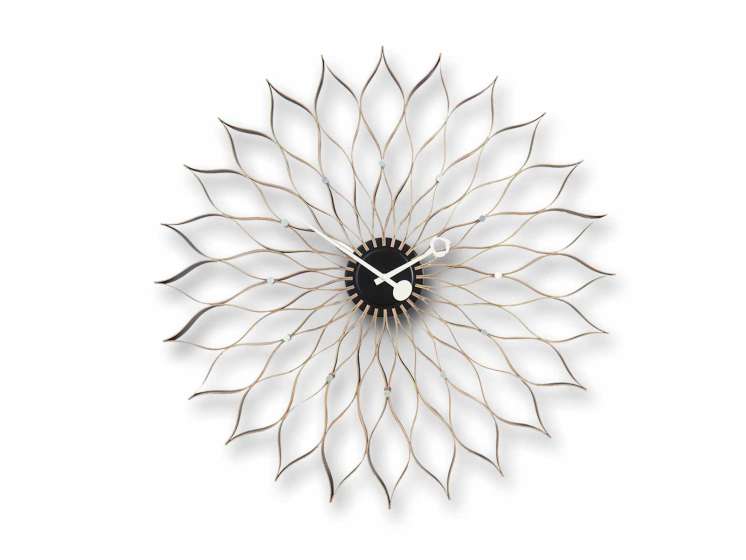 Op zoek naar dat extra straaltje zon in je woon- of eetkamer, of eventueel je bureau? Dan is deze Sunflower-klok misschien wel iets voor jou. Deze opvallende klok lijkt wel getekend te zijn met die ‘spirograaf’ uit je kindertijd. Zelf is het echter geen kleintje, met een diameter van 75 cm. De klok is er in essenhout (in zwart en messing) of in berken zoals bij deze variant.